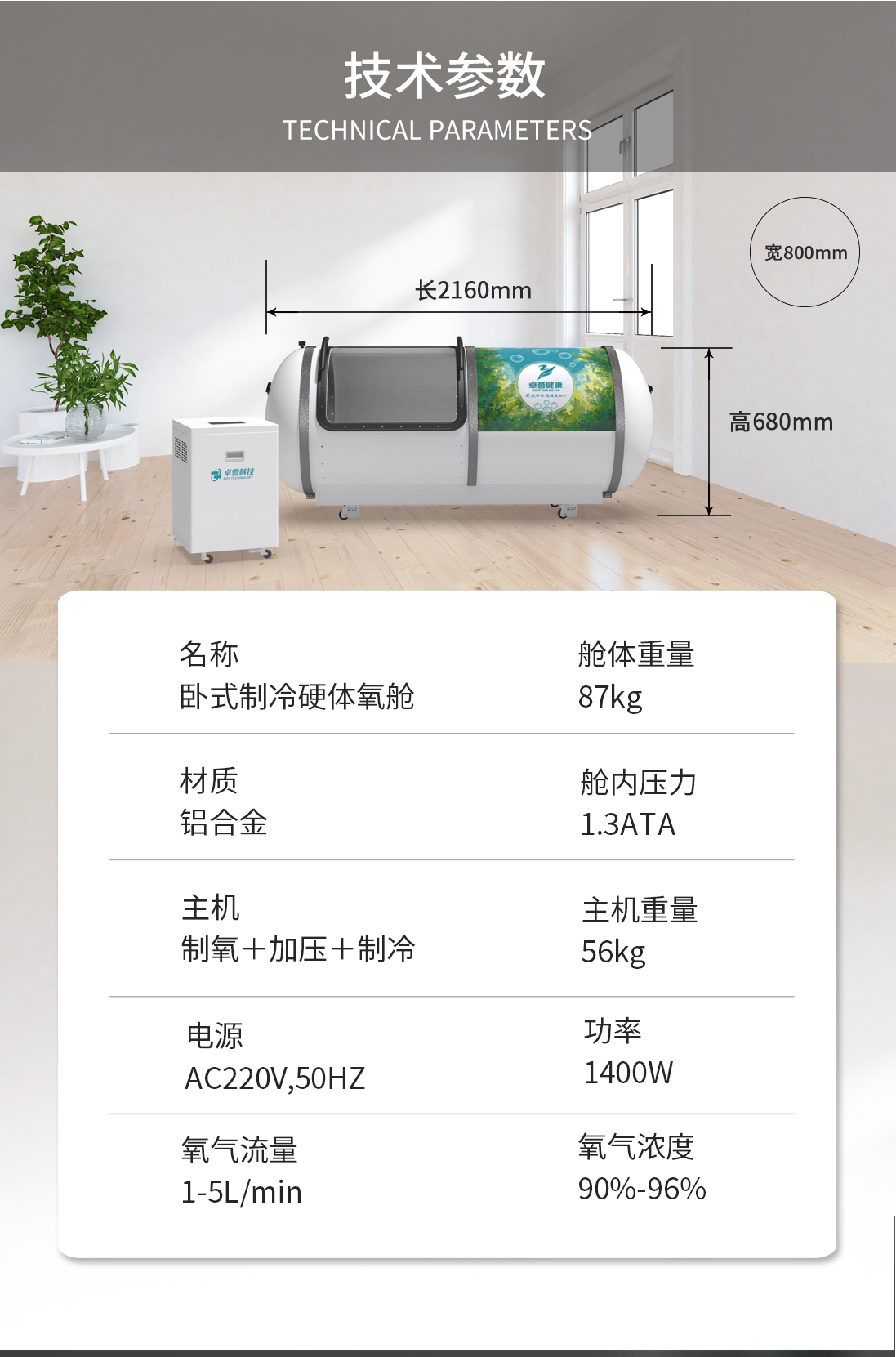 卓譽(yù)微高壓硬體氧艙,智能穩(wěn)定,1.3個大氣壓微高壓環(huán)境,加壓制氧制冷一體,吸氧更舒心。